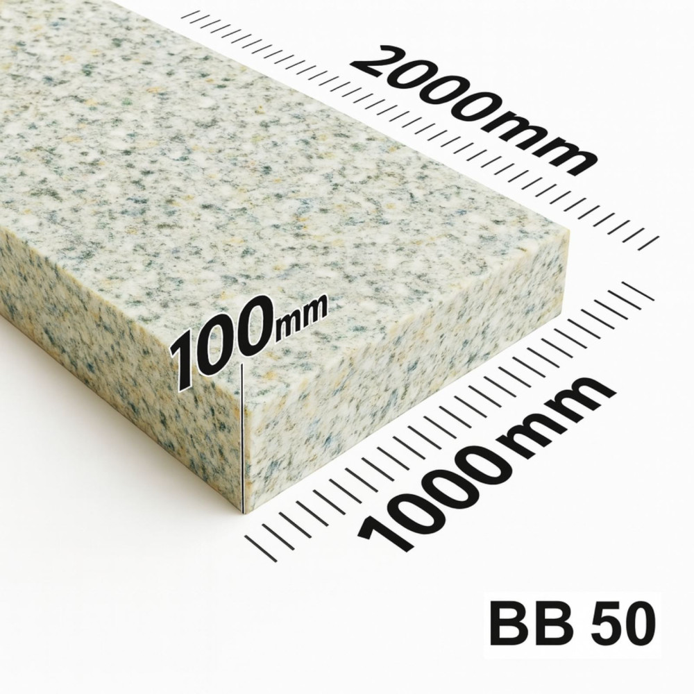 Поролон вторинного спінювання щільністю 50 кг/м³ — це міцний і жорсткий матеріал, виготовлений шляхом повторного спінювання поролонових гранул. Завдяки високій щільності, він має підвищену пружність, витримує великі навантаження і зберігає форму навіть при тривалій експлуатації.